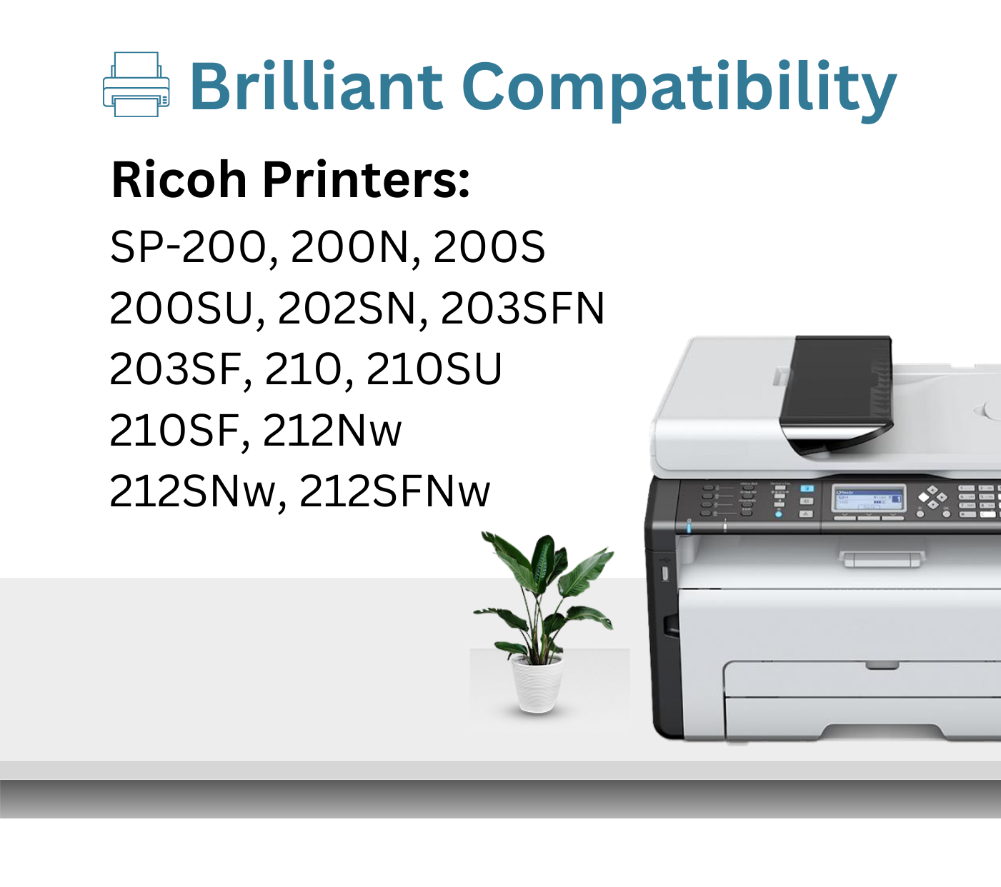 - Seamless Compatibility: Compatible with Ricoh Printers SP-200, 200N, 200S, 200SU, 202SN, 203SFN, 203SF, 210, 210SU, 210SF, 212Nw, 212SNw, 212SFNw.