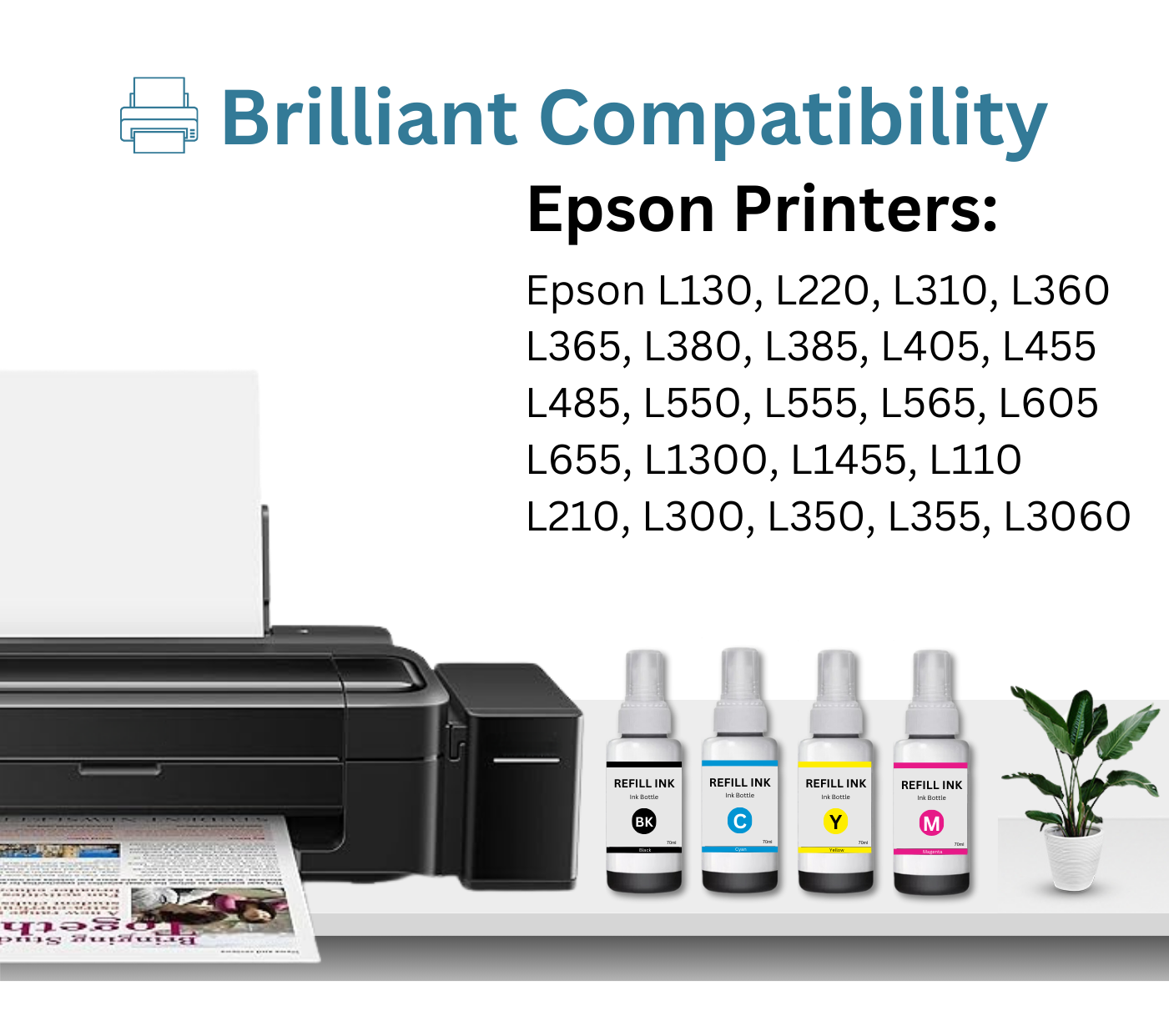 - Seamless Compatibility: Compatible with Epson Eco Tank L130, L220, L310, L360, L365, L380, L385, L405, L455, L485, L550, L555, L565, L605, L655, L1300, L1455, L110, L210, L300, L350, L355, L3060.
