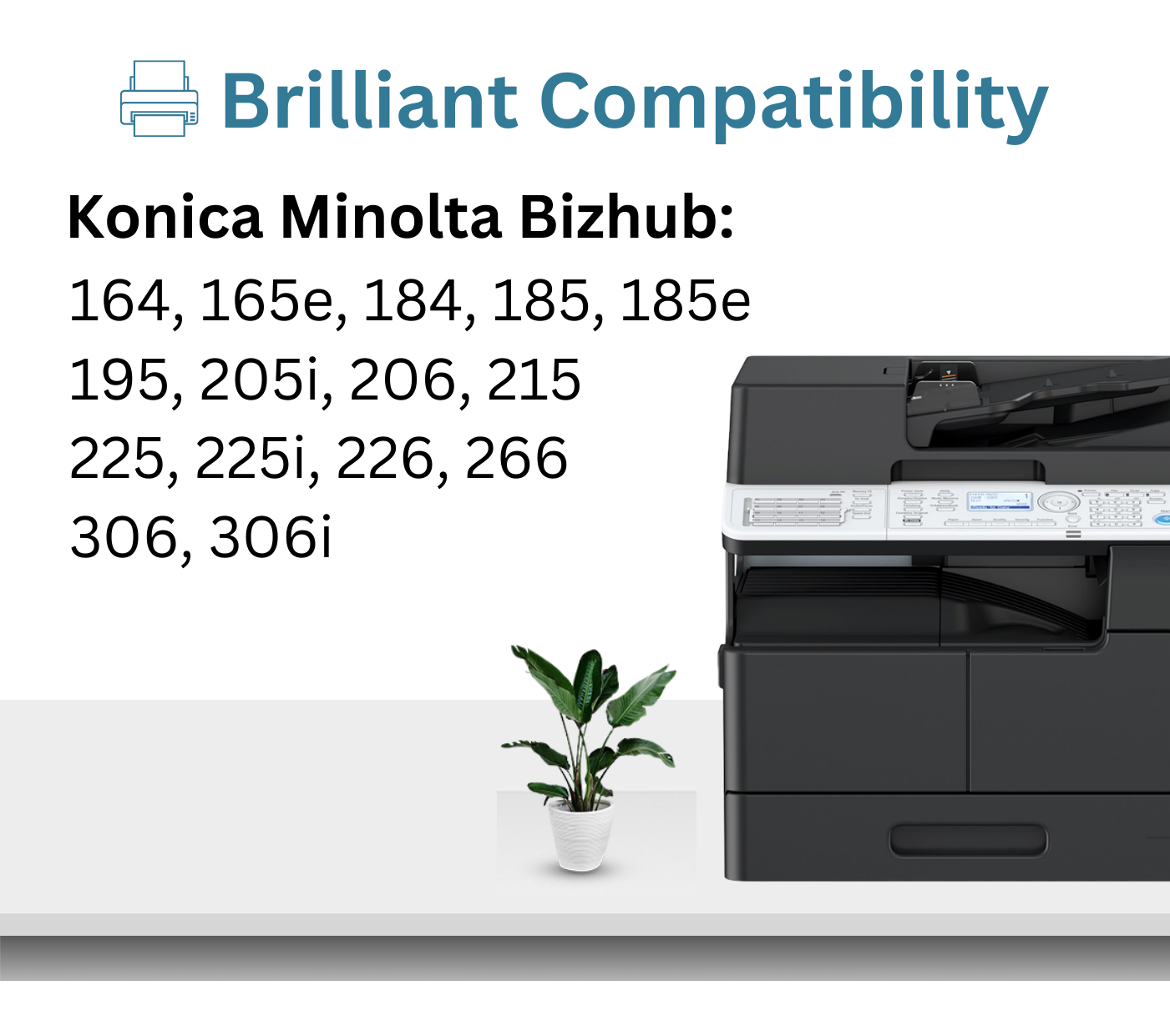- Seamless Compatibility: Compatible with Konica Minolta Printers 164, 165e, 184, 185, 185e, 195, 205i, 206, 215, 225, 225i, 226, 266, 306, 306i.